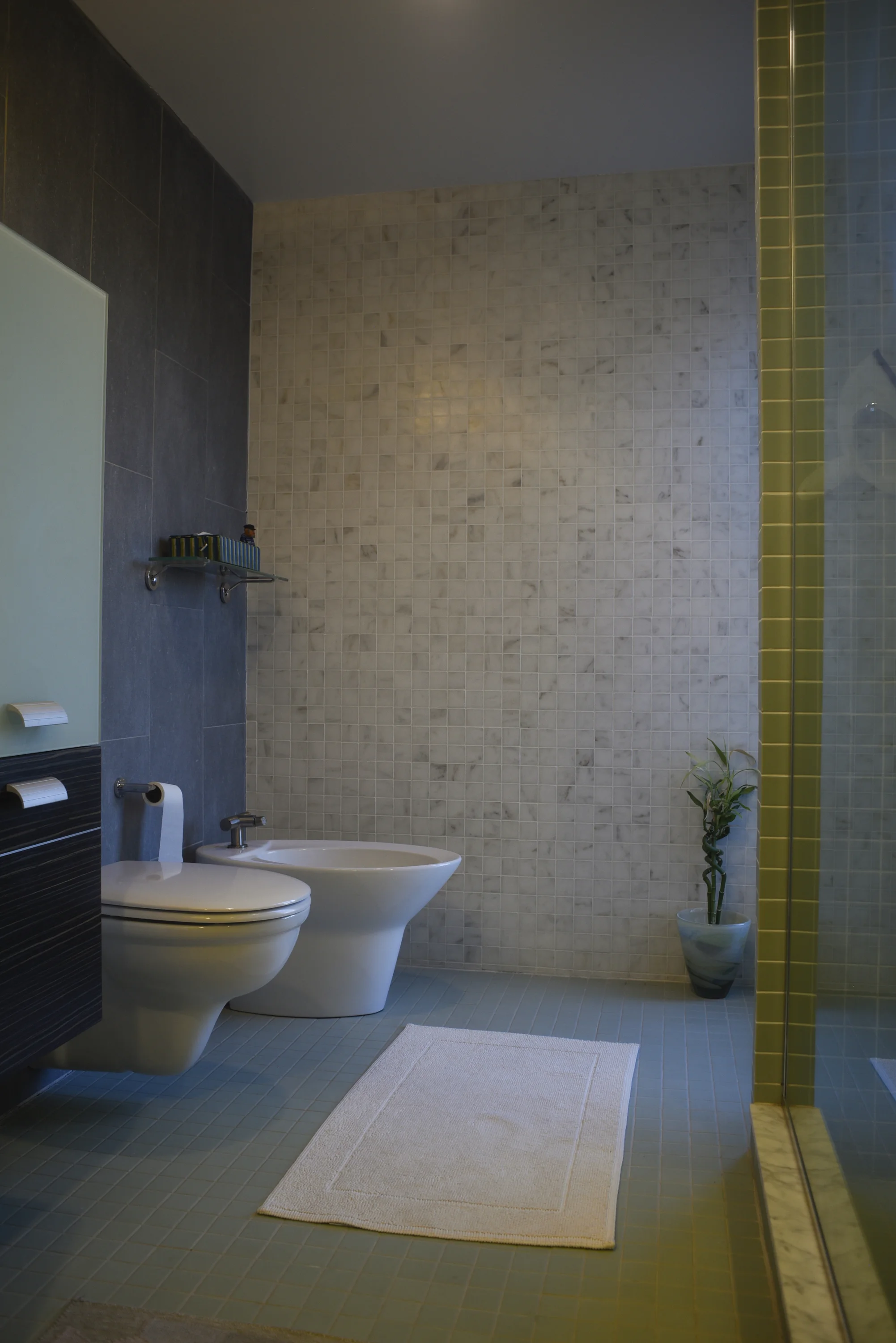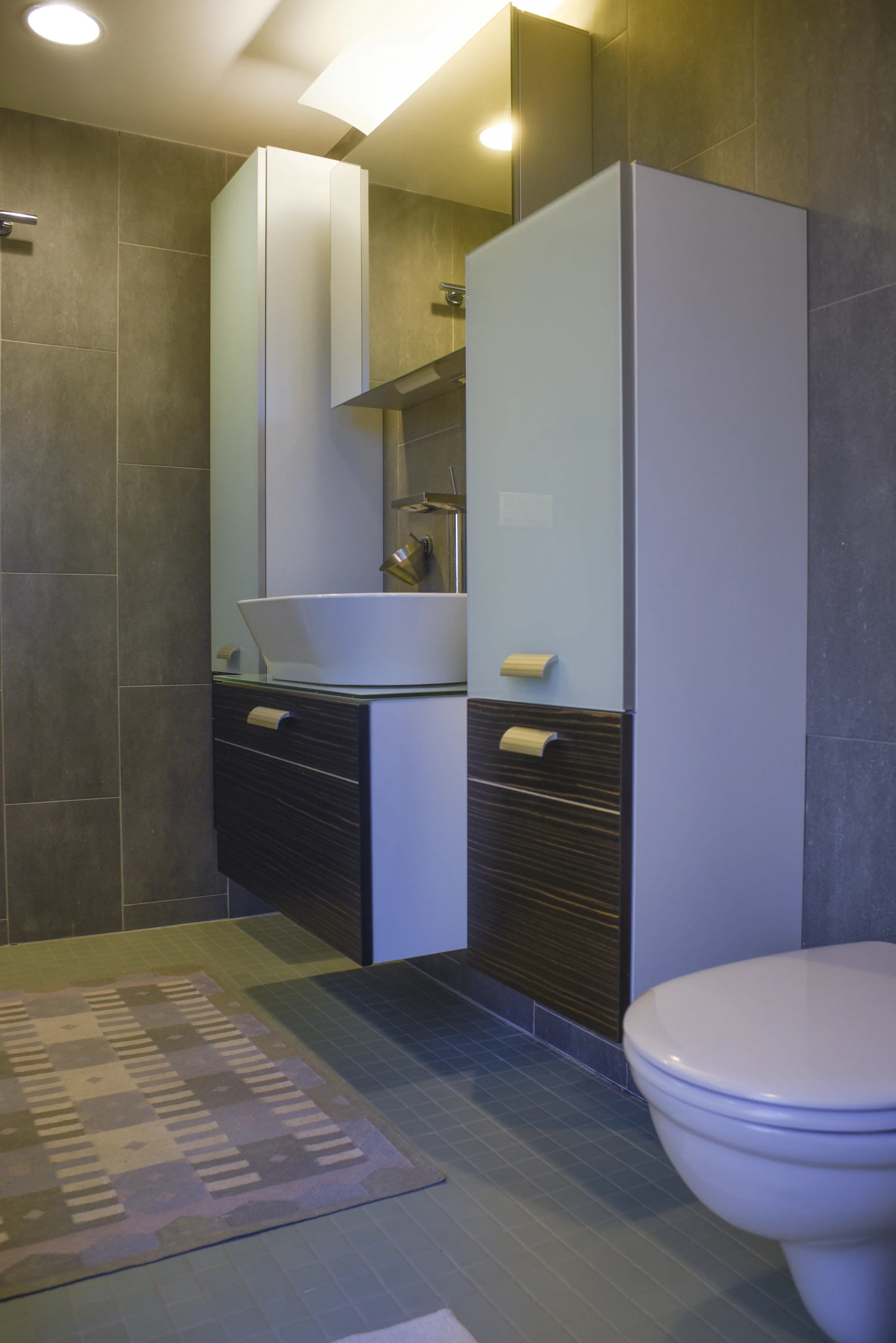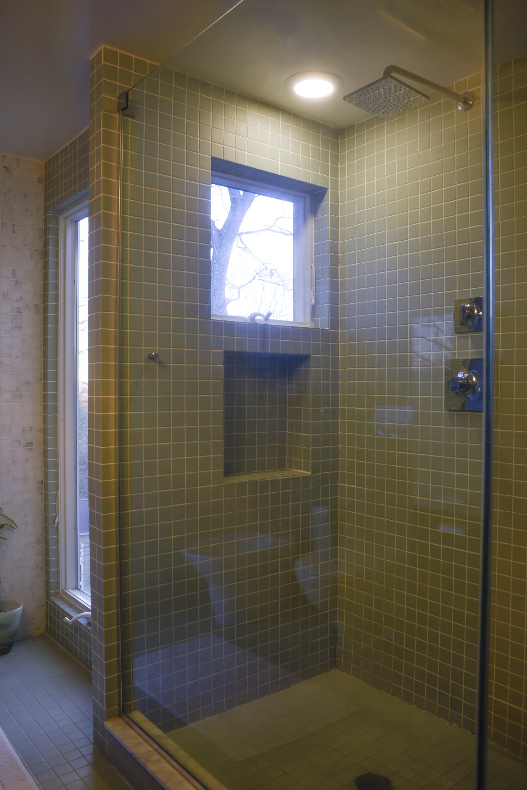 It strikes a chord for a small space with high end materials:  Italian oversized subway tiles; glass tile border; retractable mirror medicine chest; and much more.  It's all in the details and the attention to nature's needs and desires.All this at a reasonable budget.
