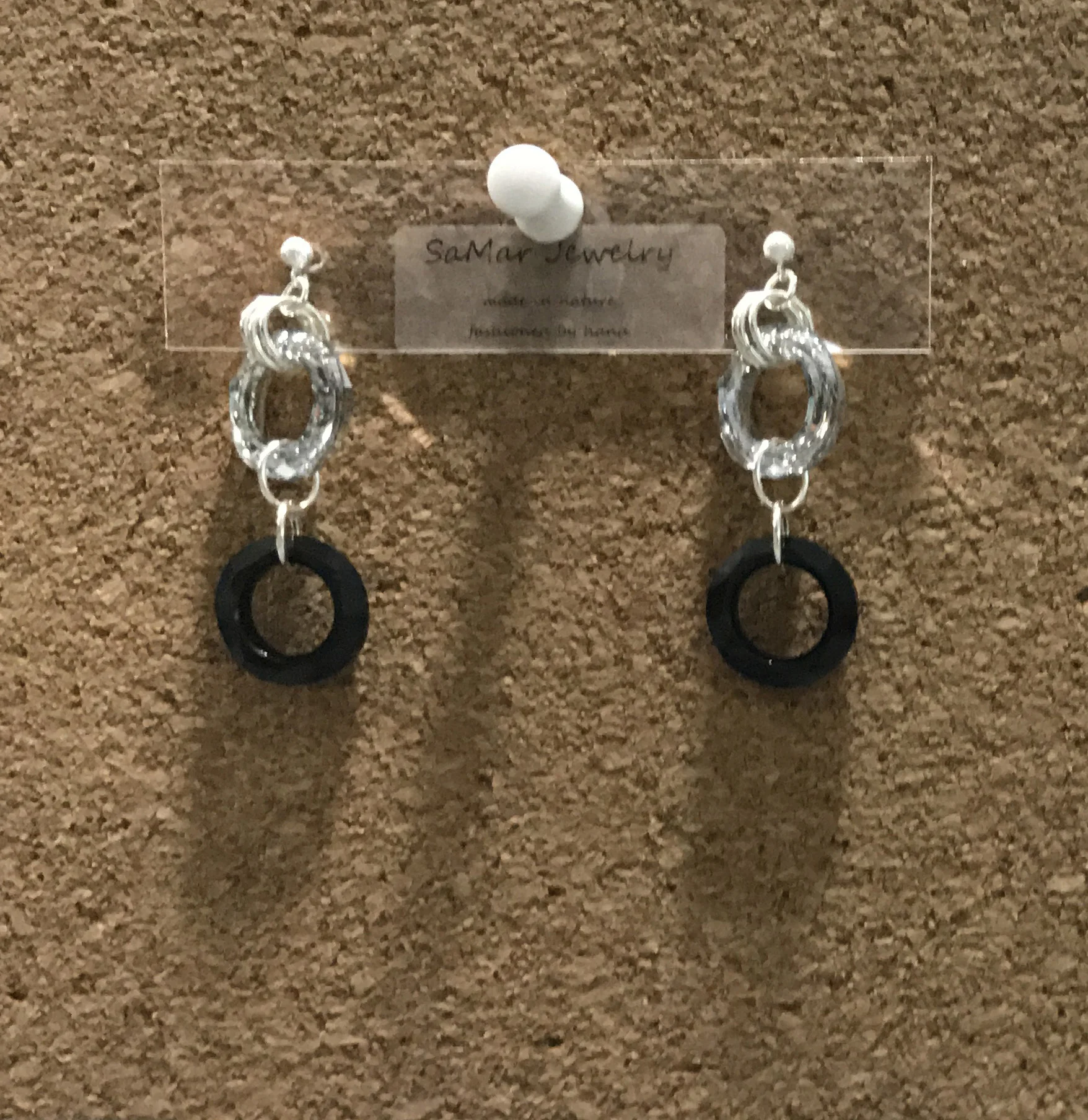 2 3/4" Amazonite Chalcedony & Larimar above + 2" Swarovski silver and black below